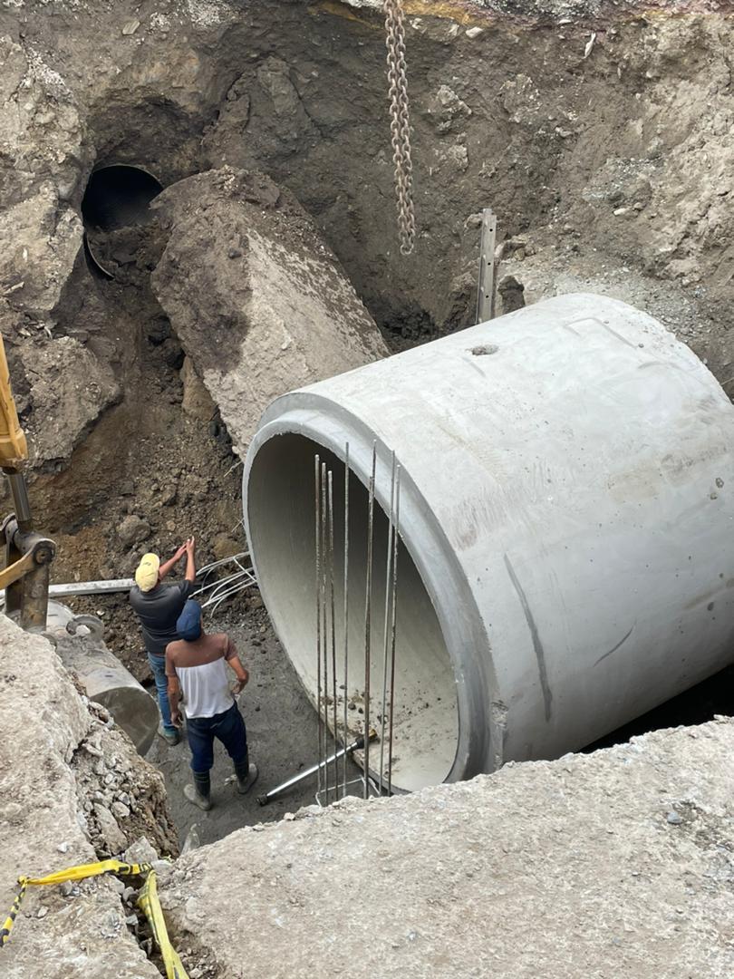 Asimismo, ya se encuentran ubicados los drenajes que existen alrededor del área para conectarlos a este cajón y así evitar futuras socavaciones.