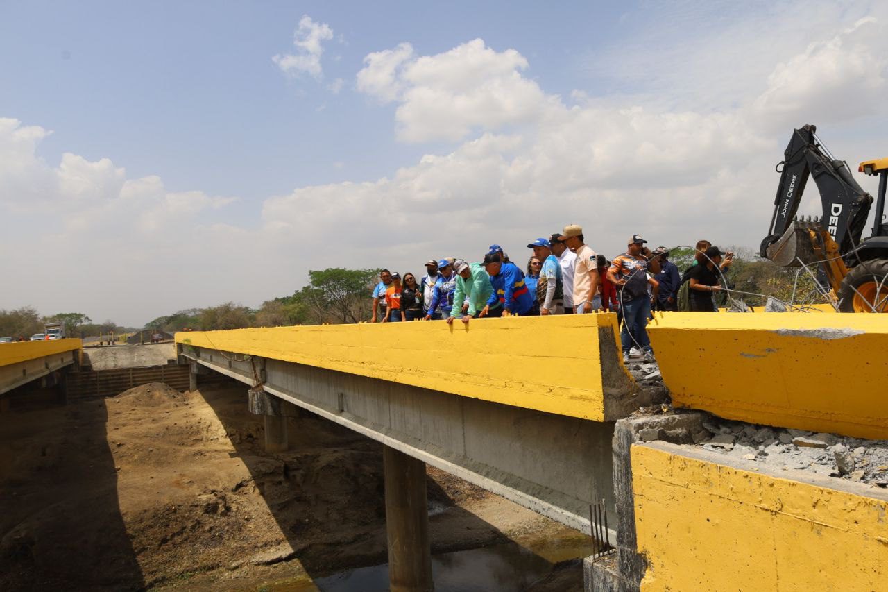 Seguidamente, las autoridades pasaron revista al mantenimiento ejecutado en el puente sobre la Quebrada Armo, en el cual, se están construyendo tres torrenteras, para reforzar la estabilidad de la estructura. A su vez, verificaron la rehabilitación de la Troncal 005, Autopista José Antonio Páez, donde la clase obrera se mantiene desplegada para el mantenimiento de la carpeta asfáltica con más de 9 mil toneladas colocadas, fortaleciendo la conectividad de la entidad con el estado Lara.