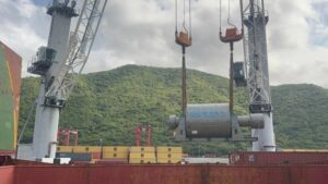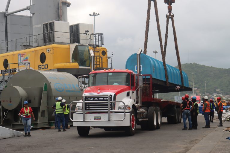 Durante la maniobra de precisión, el personal calificado ejecutó la desestiba de 4 motores de gran escala; equipos destinados a fortalecer la industria energética del país, demostrando la capacidad logística y el equipamiento especializado de esta importante terminal marítima.